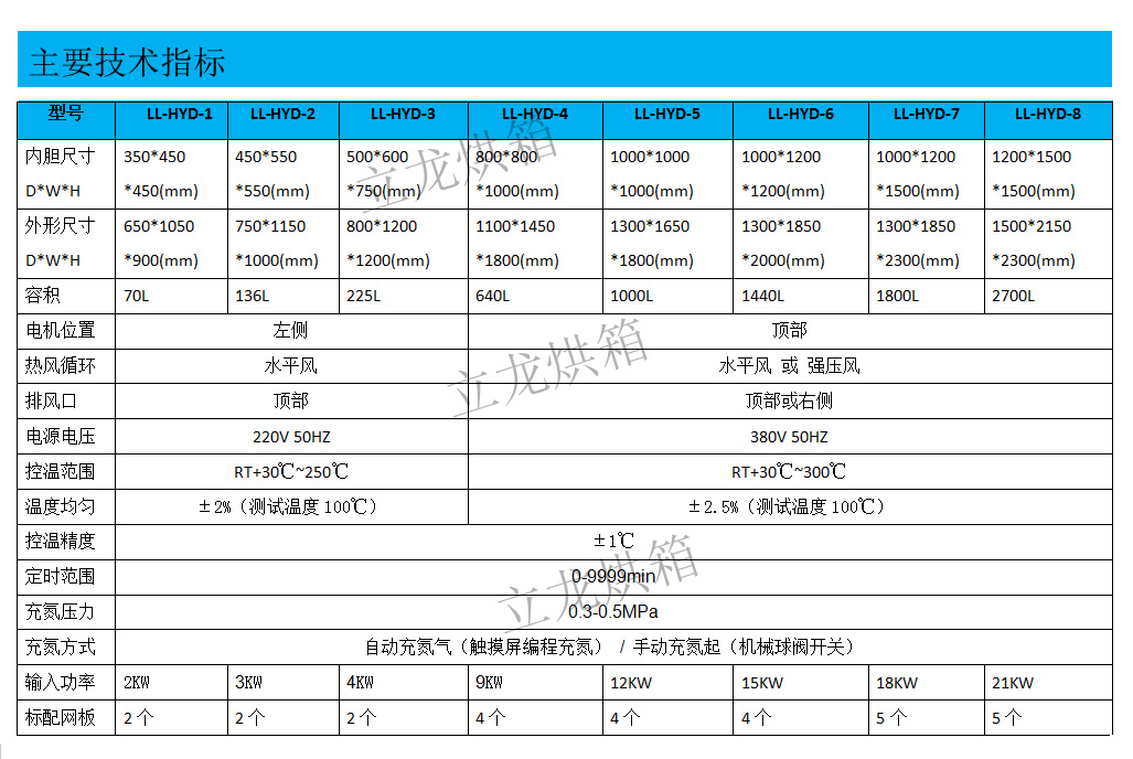 LL-HYD型充氮烘箱 氮氣保護加熱設備,可滿足各類產品無氧加熱的需求。智能數顯溫控器控溫精準,手動進氣或升級大尺寸觸摸屏操作,可自動設定充氮氣及排氣時間,帶有溫度記錄功能。
